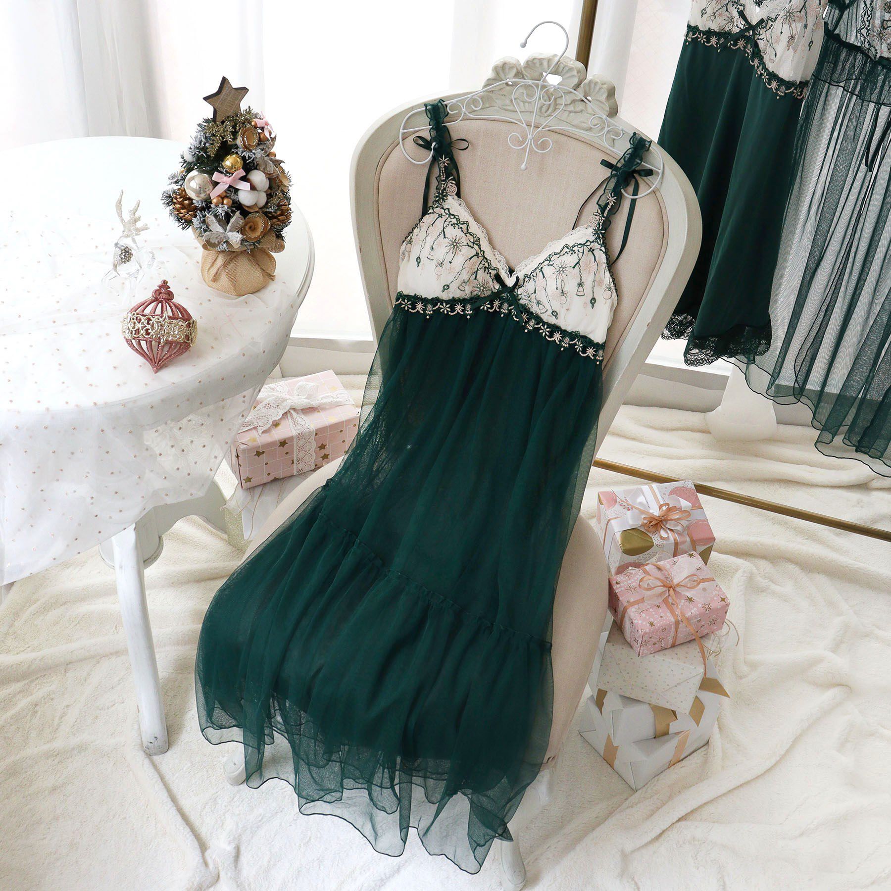 【きらめくオーナメントに囲まれて】キラキラと揺れるオーナメントをモチーフにした、リサマリのクリスマスコレクションです。身生地にはふんだんにチュールを使用して、ふんわり揺れるシルエット.. |