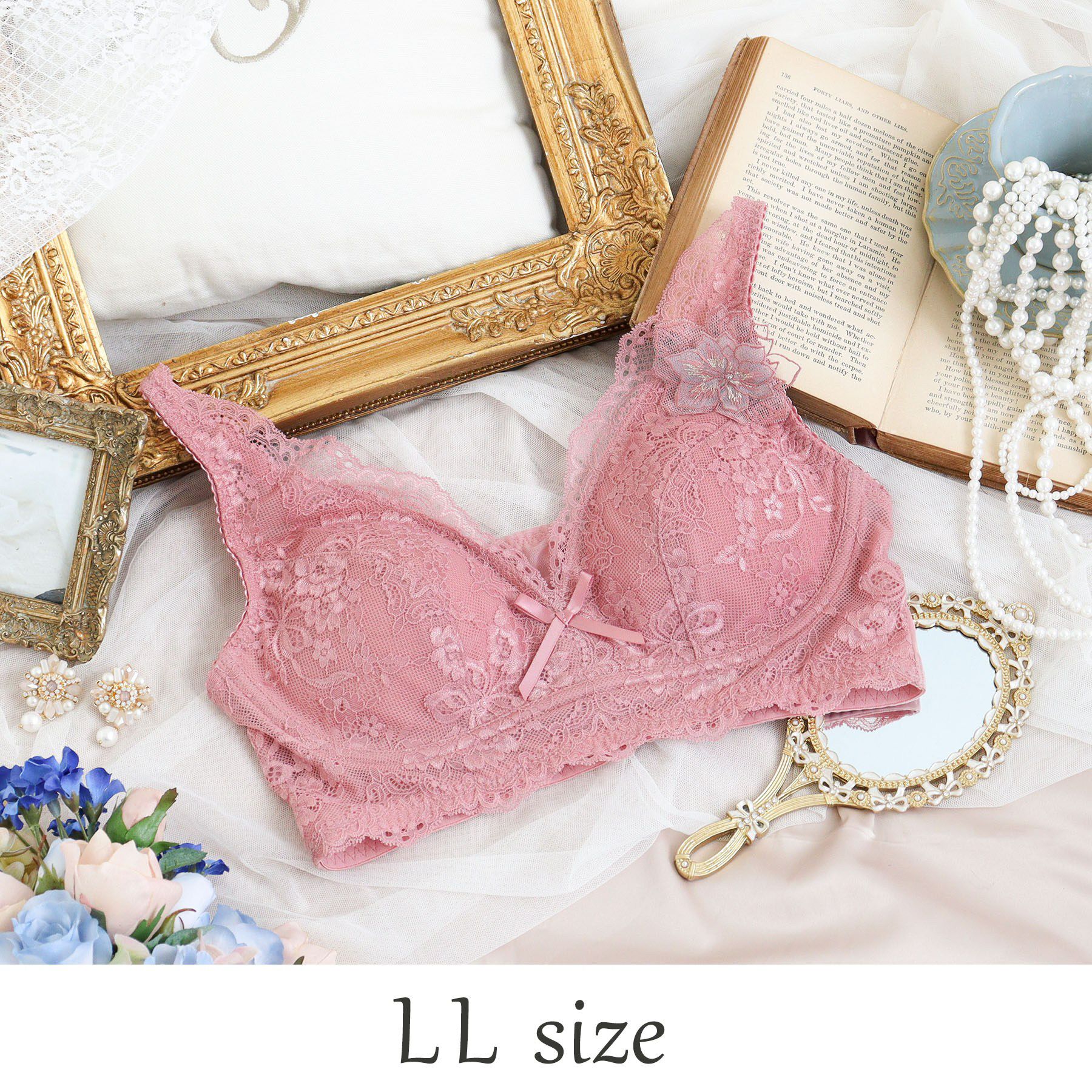 【レースで紡ぐ愛の言葉】優雅なアンティークの世界から生み出された、愛の言葉が散りばめられたシリーズです。おやすみブラはカップ全体を上品なレースで覆い、長く愛せるデザインに。ワンポイン.. |