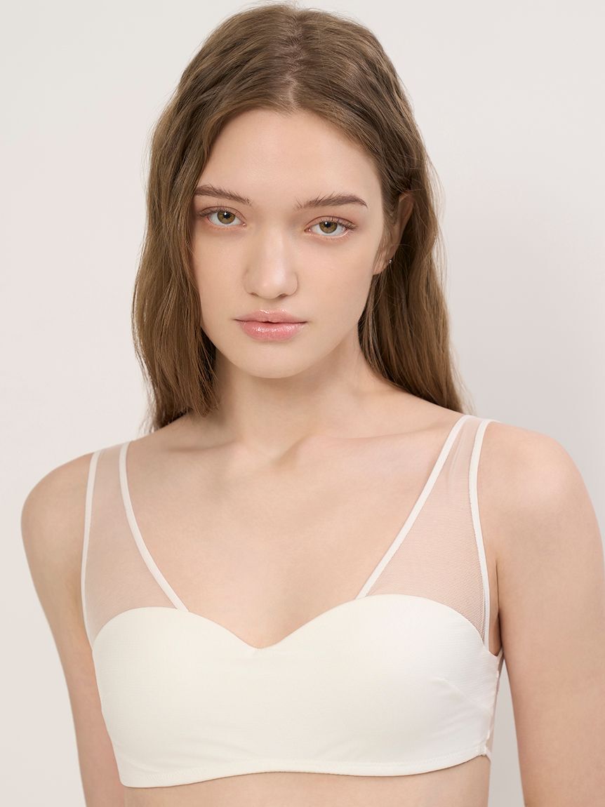 【シアー×ノンワイヤーで叶える見せるハーフトップ】【Design/Styling】シアーファンデシリーズに待望のノンワイヤータイプが登場。軽やかな着け心地とファッション性を両立した“見せるランジェリ.. |