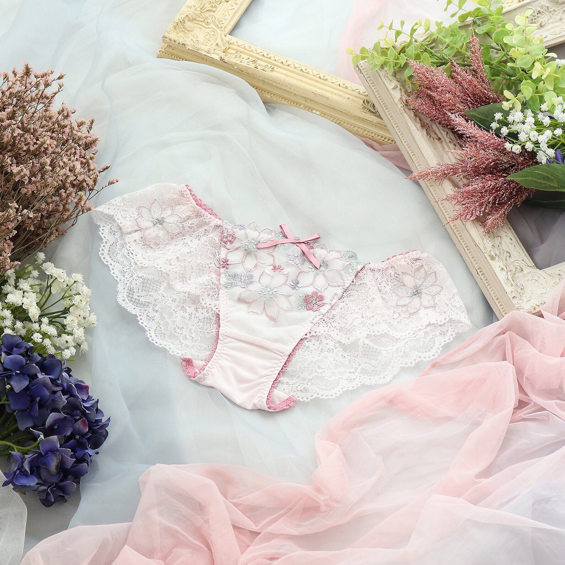 【ドレスをまとうランジェリー】風になびくドレスの裾をモチーフに、繊細な透明感のある基布をあしらったフェミニンなシリーズです。あえて単色にラメ糸のみを使用してステッチの細やかさを表現し..