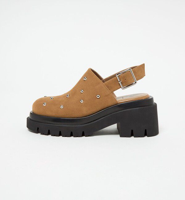 ボリュームソールのスタッズ付きミュールサンダル■デザイン厚みのあるタンクソールを合わせたミュール。存在感のあるスタッズがアッパー全体に散りばめられ、クールな印象。深めの履き口にバックベ.. |