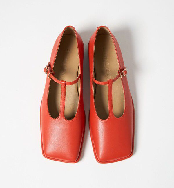 特徴的なトゥ先とTストラップデザインが映えるフラット■デザインワイドなスクエアトゥに華奢なTストラップを施し、重たくなりすぎないバランスに仕上げたフラットシューズ。約2cmのヒールを付ける.. |