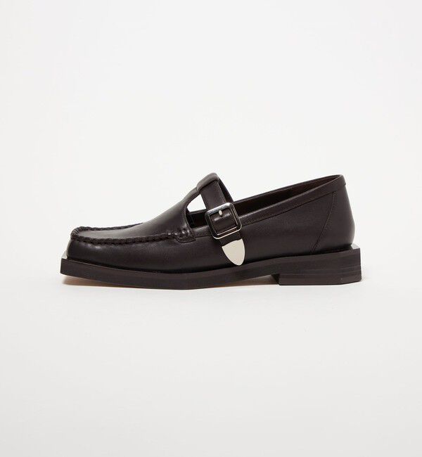 Tストラップで抜け感をプラスしたシャープなフラットシューズ■デザインボクシーなトゥラインに外側に張り出した押縁を組み合わせたTストラップモカ。バックル下にはゴムを施しているため、スムーズ.. |