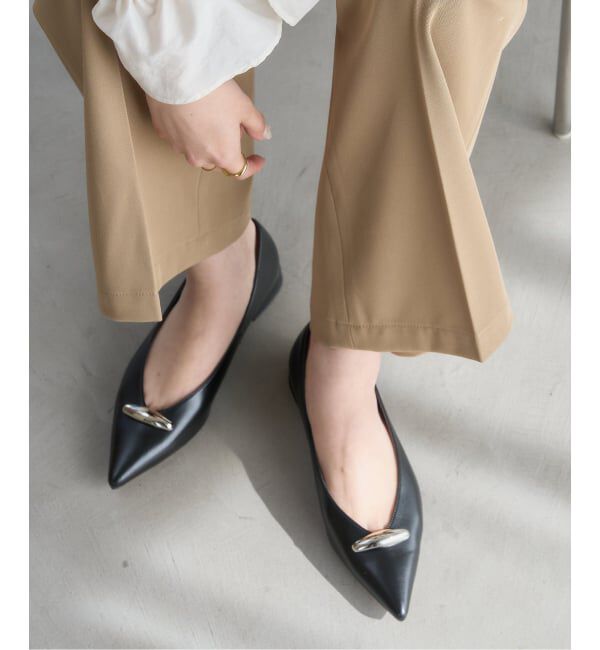 アクセサリーのようなメタルモチーフがポイントのフラットシューズ。細めのメタルパーツはやや丸みがあり、女性らしいシルエットで履いていただけます。パーツをシルバーにすることで、今年らしい.. |