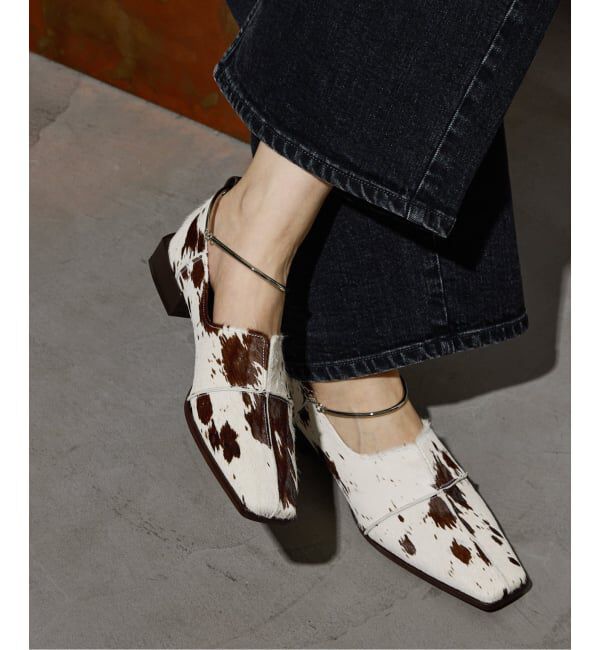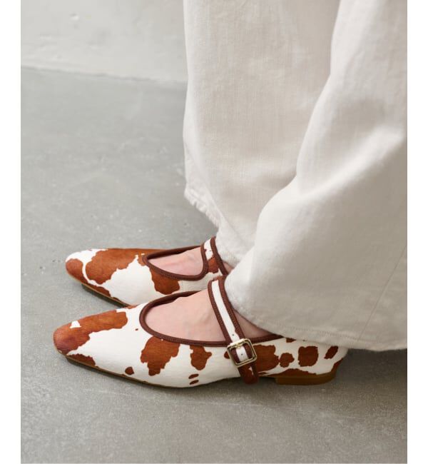 《WEB+一部店舗限定》人気のフラットにヘアカーフのホルスタイン柄が登場。ホワイトベースで足元に明るさをプラスできる1足です。取り外し可能なアンクレットがポイントになったレザーフラット。継.. |