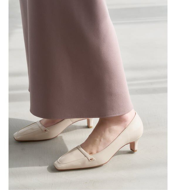 ローファーディテールをモードな印象に落とし込んだパンプス。両サイドに効かせた金具がアクセントになっています。スクエアトゥの形とリンクしたスクエアフォルムのヒールは、安定感はありつつも.. |
