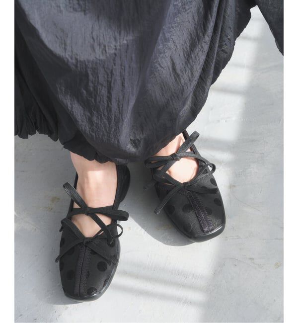 発売から大人気のダブルリボンバレリーナにフロッキープリントのドット柄が登場!甲のリボンにストレッチを効かせ、ワンタッチで履けるバレリーナ。オリジナルのモールドソールを採用し、おしゃれ.. |