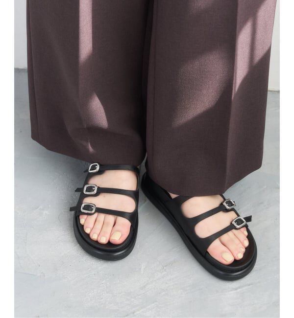 ●お届け予定:4月下旬●限定数量に達し次第、締め切りとなります3本のベルトストラップがさりげなく存在感を放つモードなスライダーサンダル。細めなストラップとぷっくりと立体感のあるバックルで.. |