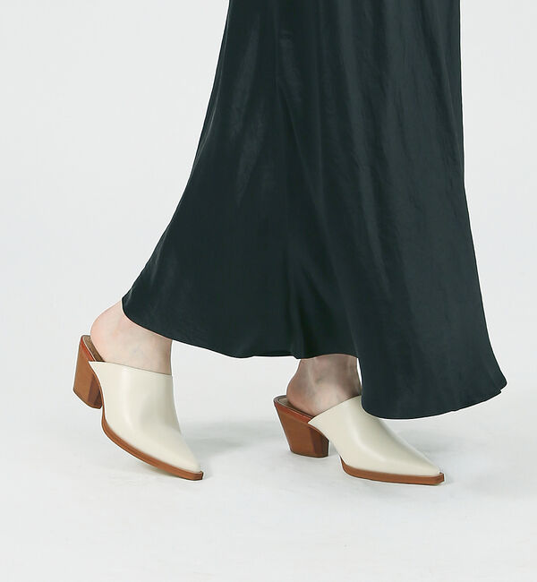 今年トレンドのウエスタンを足元に手軽に取り入れられる新作のミュール。あえてデザインはシンプルに仕上げているので、普段のスタイリングに取り入れやすいのもポイントスムースレザーのブラック.. |