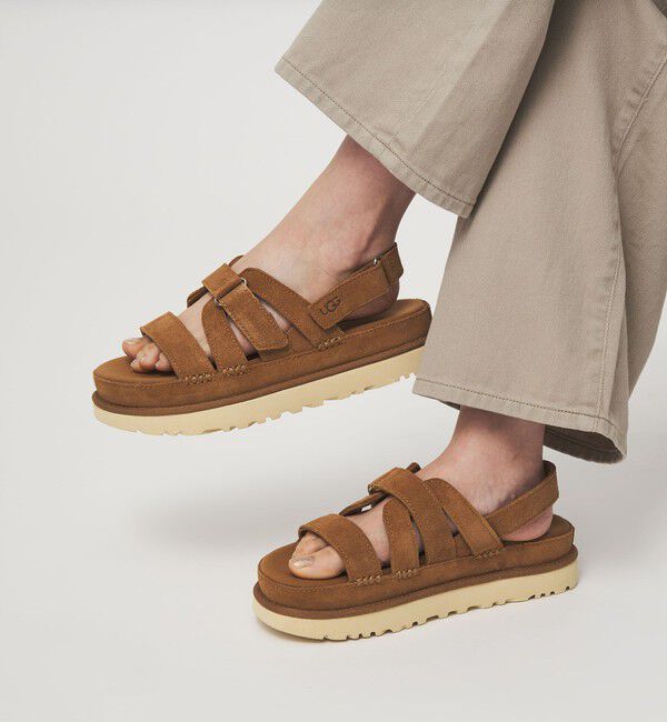 国内EXCLUSIVEカラー<UGG>ゴールデングロウ■デザイン面ファスナー仕様で調節可能な軽量サンダル、ゴールデングロウ。国内EXCLUSIVEカラーのブラウンをご用意しました。プラットフォームソールと.. |