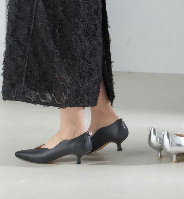 【シップス/SHIPS】 little black: パールモチーフ ウェーブ カット パンプス