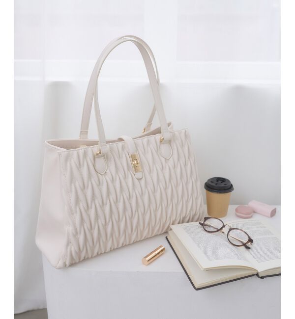 人気バッグのA4サイズ!大容量キルティングトート■デザイン大好評のキルティングバッグに、A4対応サイズが仲間入り。3つに仕切られており、大事なモノはファスナー付きのポケットに入れられる優秀バッグ。立体感のあるステッチと上品なゴールド金具が洗練された印象を与えます。シンプルでありながら存在感のあるデザインは、オンオフ問わず活躍する万能トートです。■サイズ感A4書類はもちろん、パソコンケースに入れた状態のPCまで収納できる大容量。お仕事用としてはもちろん、荷物が多い日のデイリー使いにも安心です。内ポケットも備えているので、小物の整理もしやすい仕様になっています。※重量875g■スタイリング通勤や通学などきちんと感が欲しいシーンにぴったり。ブラックはスタイリッシュに、アイボリーは華やかで女性らしい雰囲気に仕上がります。シンプルコーデに合わせるだけで、上品に映える万能アイテムです。■商品のお気に入り登録:再入荷通知やのこりわずか、お得なプライスダウンの情報も受け取ることができます。ぜひご登録ください◎※サンプルでの撮影の為、製品と仕様が異なる場合がございます。※商品の色味は、撮影場所や光のあたり具合などにより色味が違って見える場合がございます。また、お客様のお使いのモニター環境などにより色味が異なって見える場合がございます。予めご了承の上ご注文下さい。※こちらの商品はWEB限定販売商品となっております。 マジェスティックレゴン/MAJESTIC LEGON バッグ|トートバッグ
