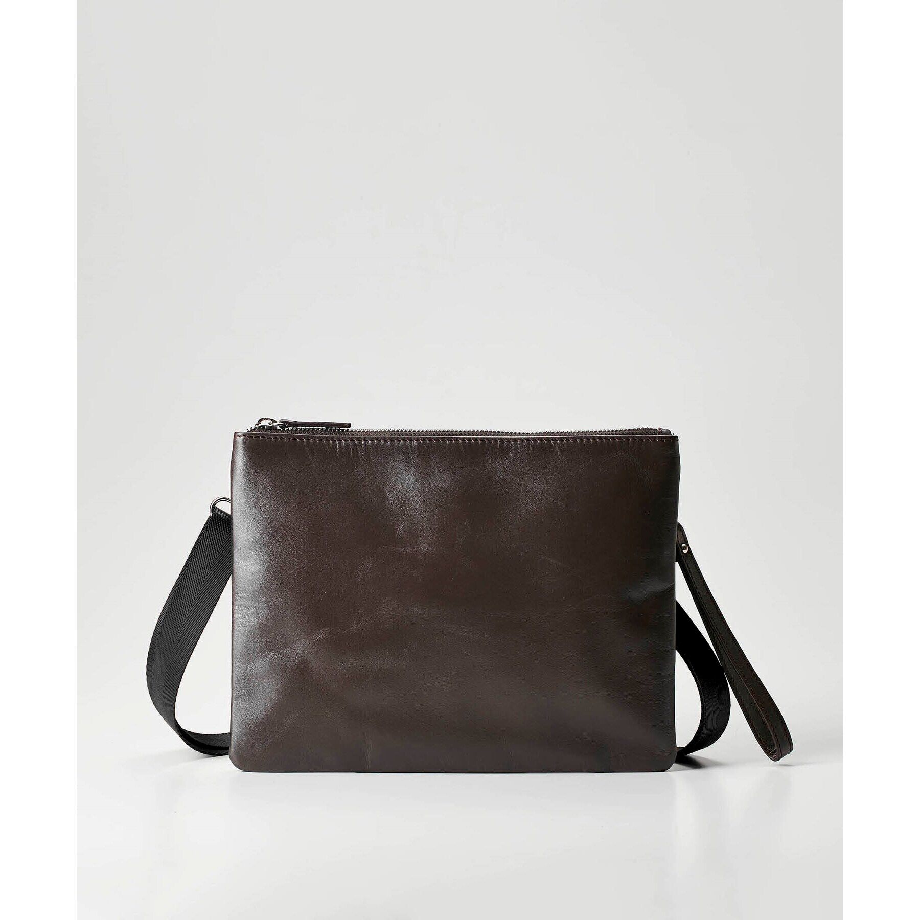 【デザインポイント】定番の2WAYクラッチバッグ。細かい水シボ型押しレザーとシュリンクレザーのコンビネーション。傷の目立ちにくいレザーを採用。背胴上部両端のD管にショルダーテープを付けるこ.. |