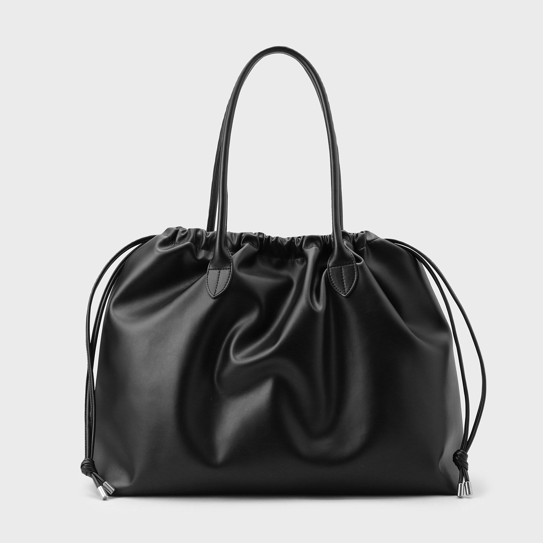 シンセティックシュリンクレザーシリーズの縦型トートバッグ【デザイン】さまざまなスタイルで活躍してくれる汎用性の高い縦型トートバッグ。非常に高級感ある仕上がりで、目立ちすぎないシルバー.. |
