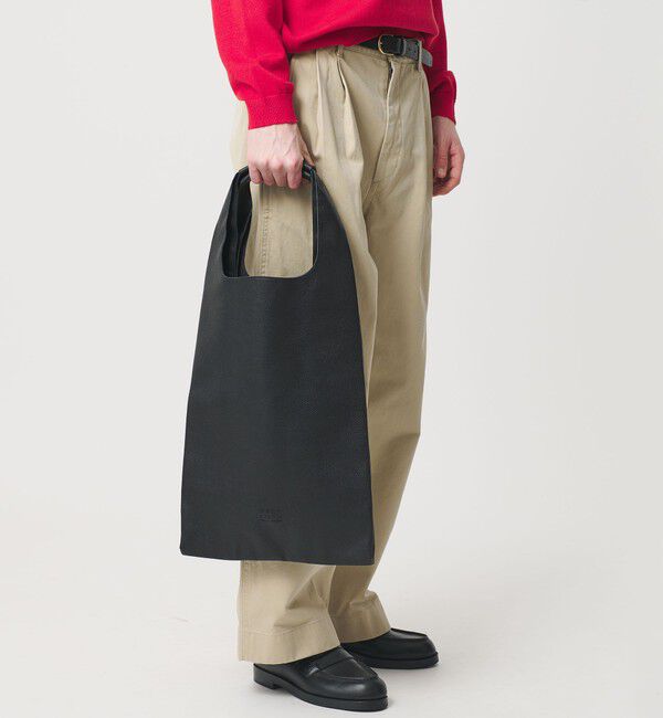 大人の装いに馴染む、レジ袋モチーフの革バッグ■デザイン馴染み深いスーパーやコンビニのレジ袋をモチーフにしたレザーバッグ。一見フラットながら、横マチを折り込んだ構造で、見た目以上の収納力.. |
