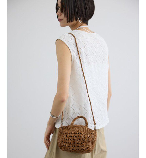 ■デザイン/シルエットざっくりとした透かし編みが目を惹くラフィアミニバッグ。職人が一点一点手編みで仕立てたクラフト感あふれる本体に、ブラックの牛革ハンドルとタッセルチャームを合わせて上.. |