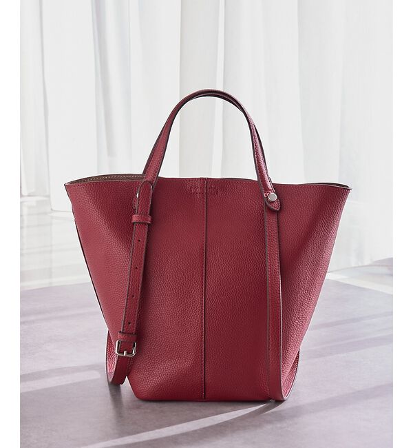 《POINT》シーンや気分に合わせて“2WAY”で楽しめるレザーバッグ。ショルダーベルトで肩掛け、ハンドルで手持ちと持ち方を変えられるだけでなく、バッグの上部を折り込めば正方形に近いトート型から.. |