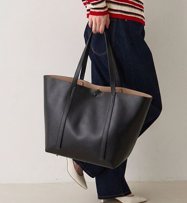 &MyuQが提案するミニマルで上品なフェイクレザートート。余計な装飾をそぎ落とした洗練されたフォルムに、A4資料やPCが余裕で入るたっぷりの収納力を兼ね備えています。持ち手は肩掛けしや.. |