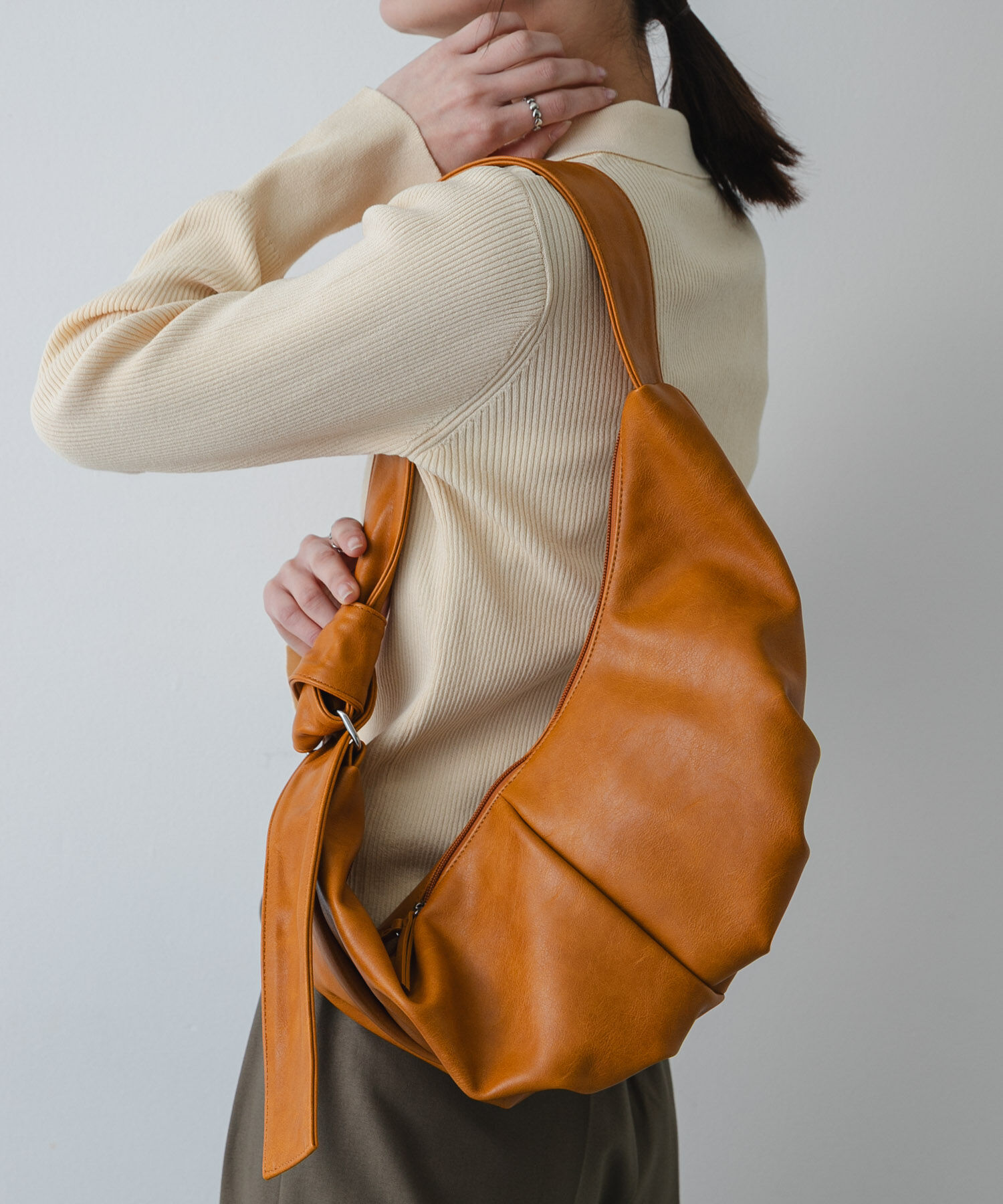 【周りと差がつく。クロワッサン型デザインバッグ】・柔らかいフェイクレザーを使用し、身体に馴染む心地よさ・クロワッサンのようなタックデザインが、トレンド感のあるアクセントに・マチがしっ.. |