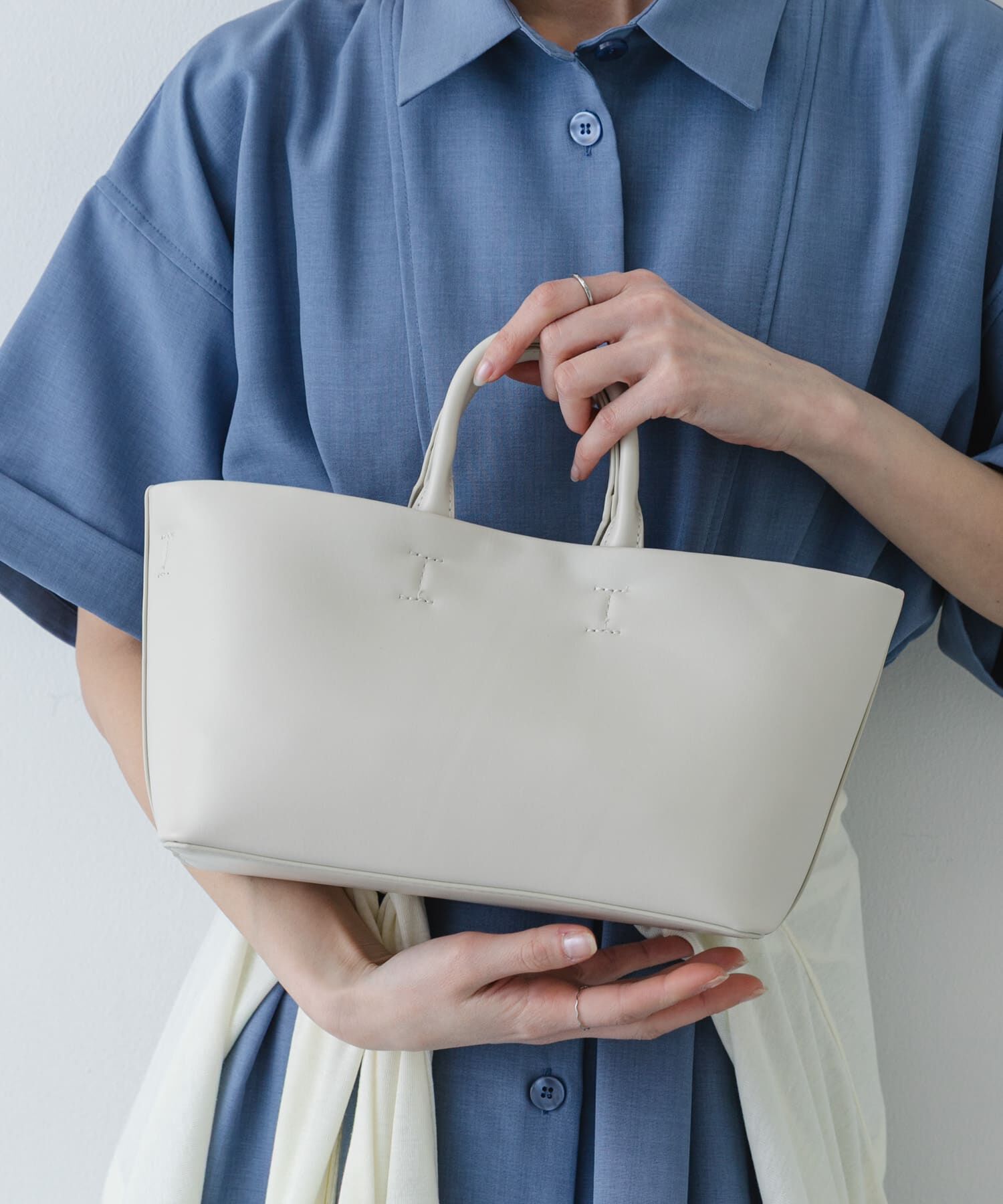 【品よく軽やかに。オンオフ自在なフェイクレザーバッグ】・ハリのあるフェイクレザーと、温かみのあるフェイクスウェードのアソート展開・無駄を削ぎ落としたシンプルなフォルムが、素材の上質な.. |