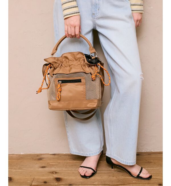 春夏らしいメッシュ素材を使用した2WAY巾着バッグ。●ポイント口元はフリルデザインで程よい甘さをプラスした、カジュアルガーリーなアイテム。異素材のコンビで程よく中身が見えにくく安心で、軽量.. |