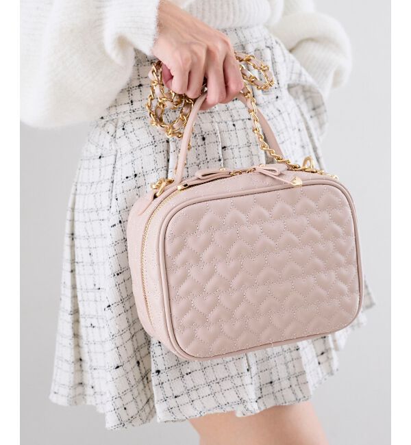SNS映え間違いなし!360度キュートなバニティバッグ■デザイン上品なキルティングデザインにビジュー×パールをあしらったビジュアル力抜群のバニティバッグ。ハートの引き手がさりげないポイントで.. |