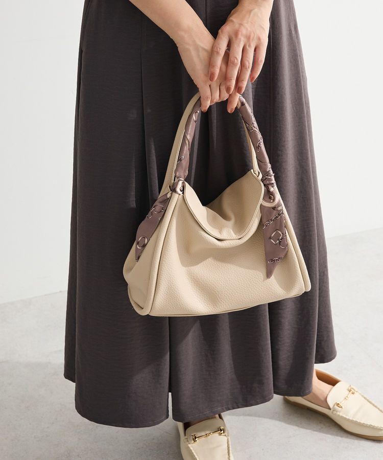 上品スカーフがアクセント、使い勝手の良いセットバッグ上品なスカーフデザインが目を引くバッグとポーチの3点セットです。ハンドル部分にあしらわれたスカーフがさりげないアクセントとなり、シン.. |