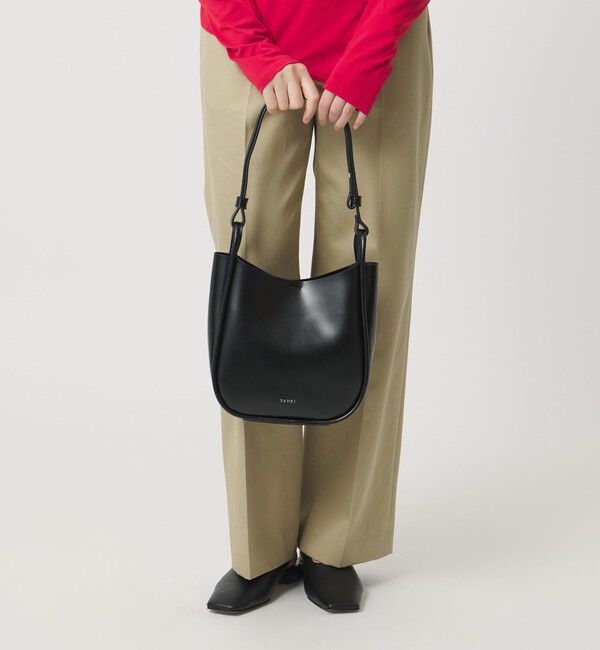 <YAHKI>ラウンド型のワンショルダーバッグなめらかな光沢としっとりとした質感が魅力の素材を使用したショルダーバッグ。無駄を削ぎ落としたミニマルなデザインに、上品でモダンな佇まいを備えた.. |