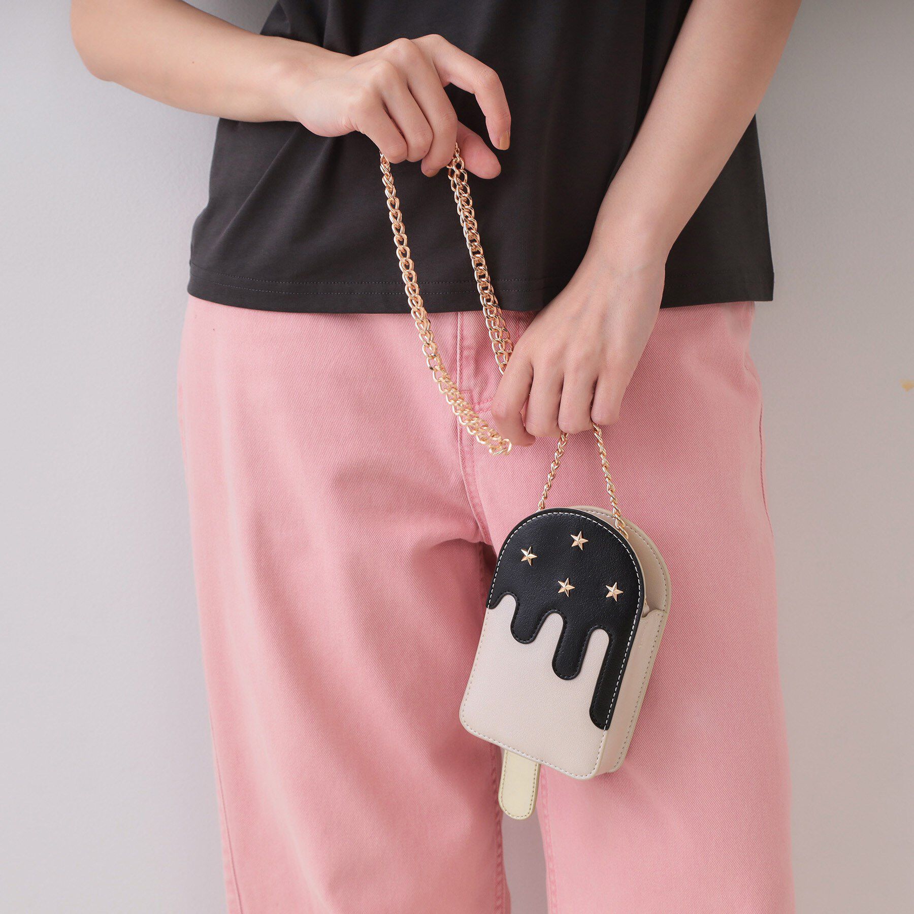パイナップルとアイスクリームのデザインがシーズンムードを高めてくれる!合皮素材のキャッチーなミニショルダーバッグ・本体はメタリック調の合皮素材を使用・ストラップ部分はブランドの刻印が.. |