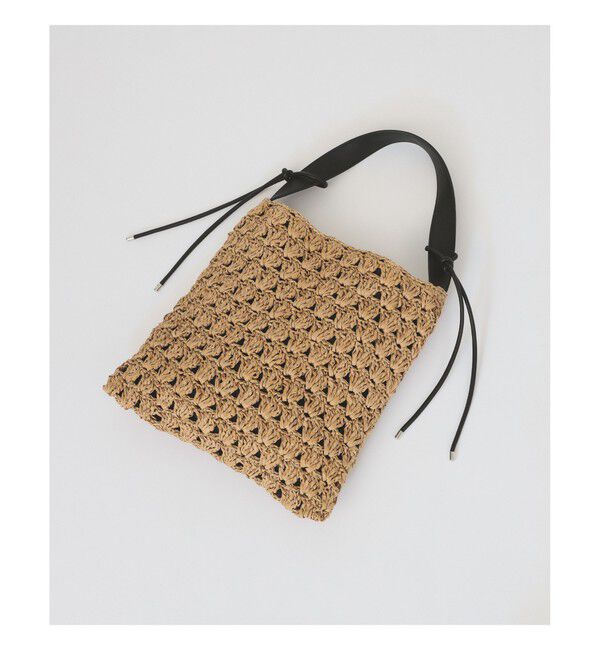■デザインざっくりとした透かし編みの表情が目を引く、シーズンムードたっぷりのペーパートートバッグ。 ナチュラルなペーパー素材を使用しながらも、ハンドル部分にブラックのフェイクレザー素材.. |