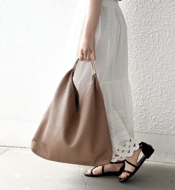 【26SS】★ POINT ★・A4サイズ収納可能・ペットボトル500ml収納可能・内ポケット×2全面にあしらった編み込みデザインが目を惹くトートバッグ。ボディとハンドルのバイカラーが、シンプルな中にさり.. |