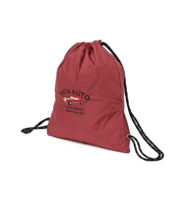 【26SS】★ POINT ★・A4サイズ収納可能・ペットボトル500ml収納可能・ファスナー付きサイドポケット有ナイロン100%素材のナップザック。キャッチーなフロント部分の刺繍がワンポイントに◎背負っても.. |