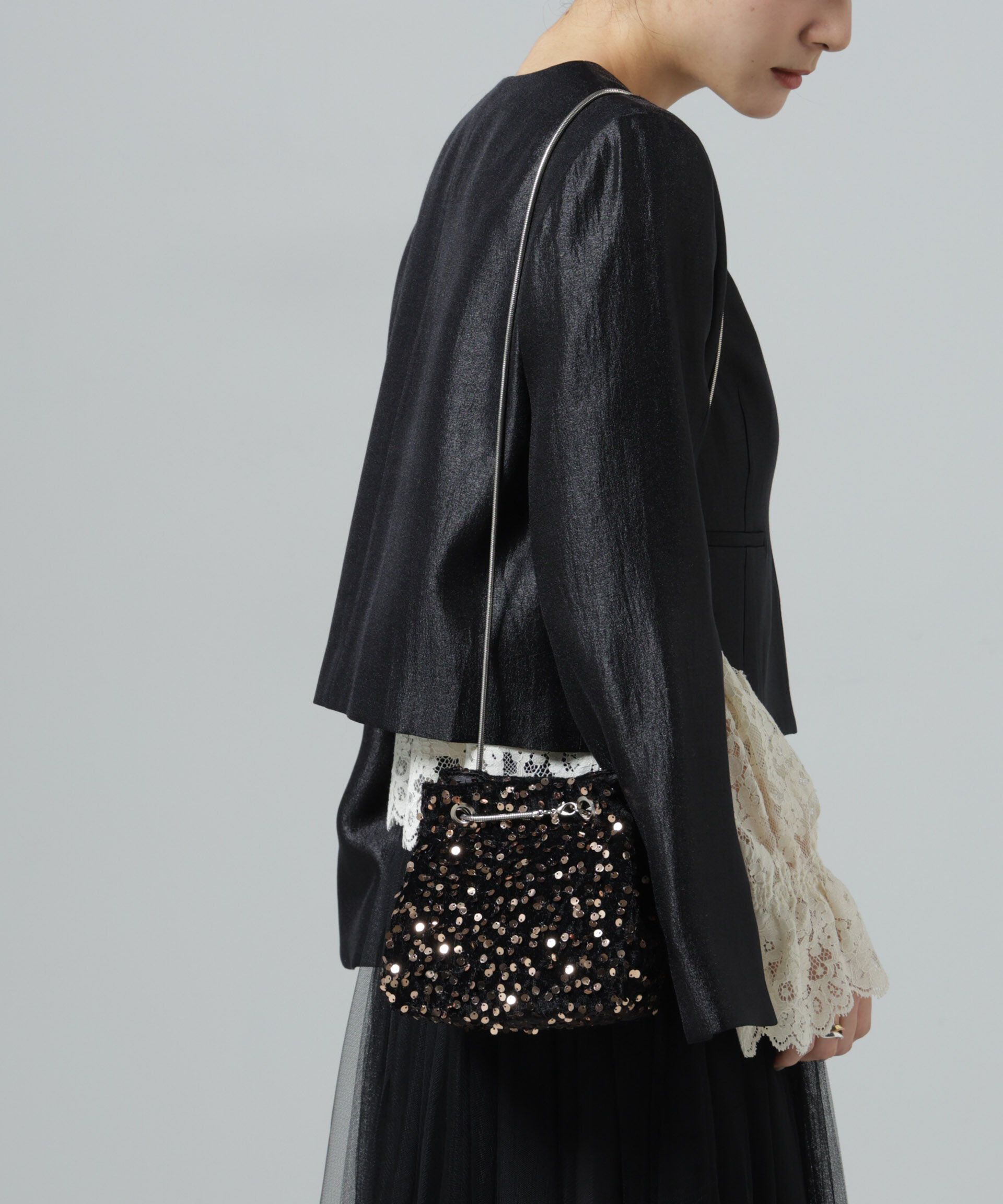 動くたびにキラキラと繊細な輝く華やかな巾着バッグ【2026 SS】NANO universe(ナノ・ユニバース)セレモニーやパーティーシーンに重宝する華やかなデザインの巾着バッグ。柔らかく上品な光沢をも.. |