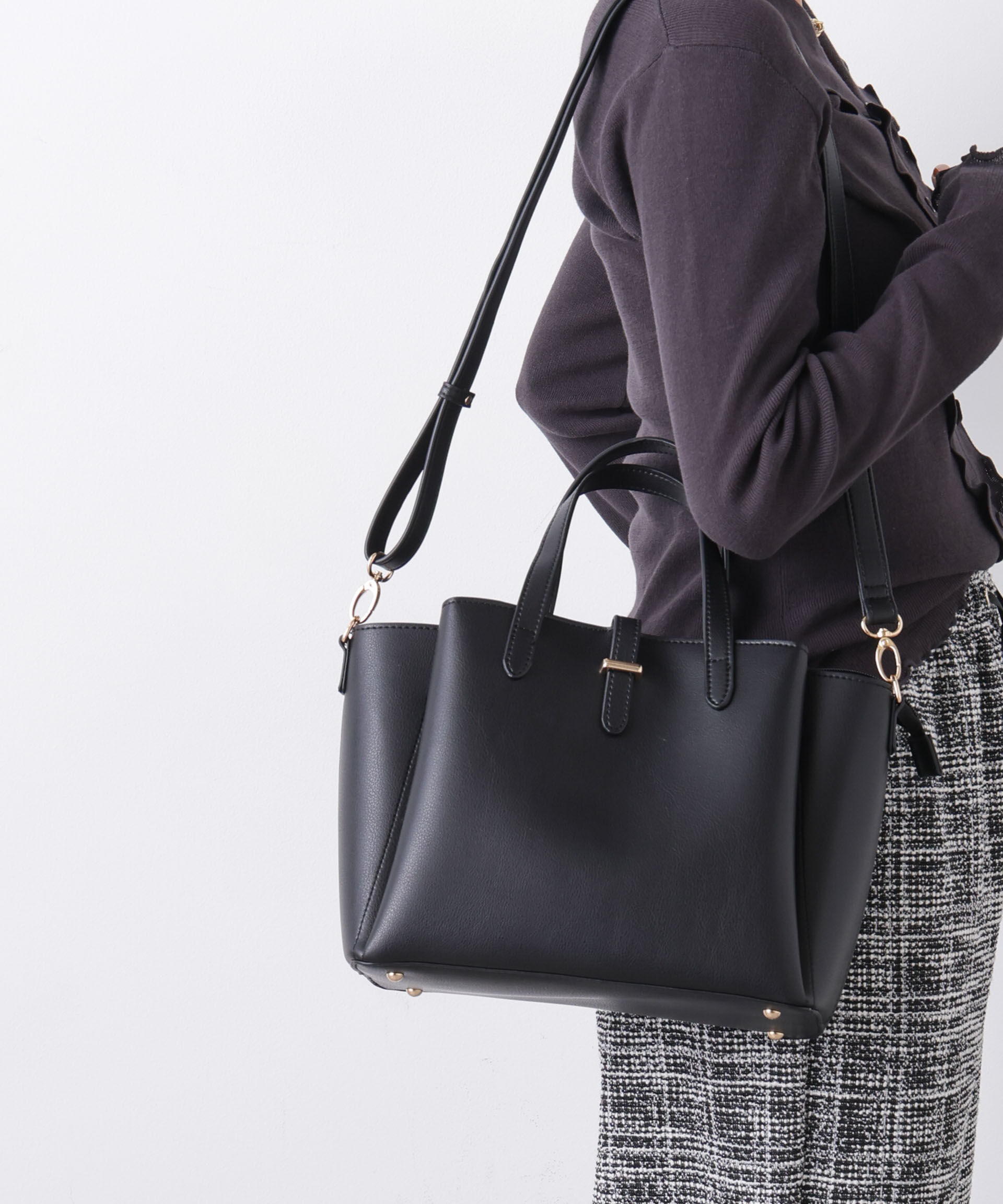 どんなシーンにも様になる、大人のデイリーバッグ【2026 SS】NANO universe(ナノ・ユニバース)キラッと輝くフロントのメタル金具が洗練感を放つトートバッグ。ショルダーストラップの有無でアレ.. |