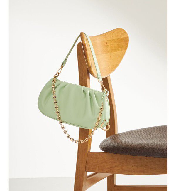 コロンとしたフォルムとギャザーデザインが可愛らしいミニポーチバッグ■デザイン・素材ジュエリーの様なゴールドのショルダーチェーンを使用し、アクセサリー感覚でお持ちいただけます。また、本体.. |