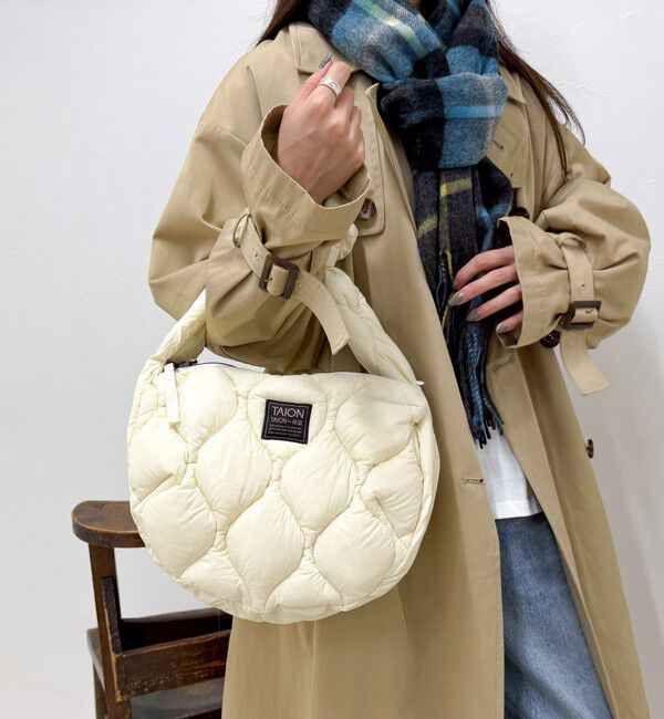 ◇TAION◇【2025 AW】毎日使える軽さと収納力が魅力のバナナショルダー●point・軽さと実用性を備えたショルダーバッグ・高密度ナイロン生地に800FPの上質ダウンを使用し、ヘチマキルトで軽く柔らかな.. |