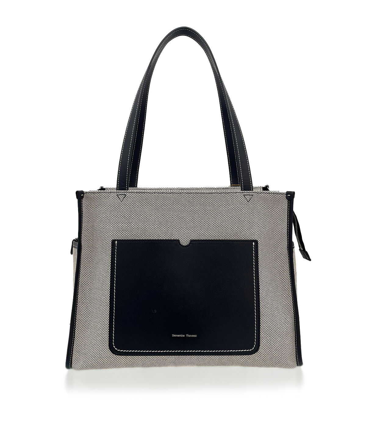 ◇Samantha Thavasa(サマンサタバサ)のシャンブレーマルチトートバッグ異なる素材感を使用したマルチなA4トートバッグ。【デザイン】シャンブレーの素材感に持ち手やポケットはレザーで仕上げたアイ.. |