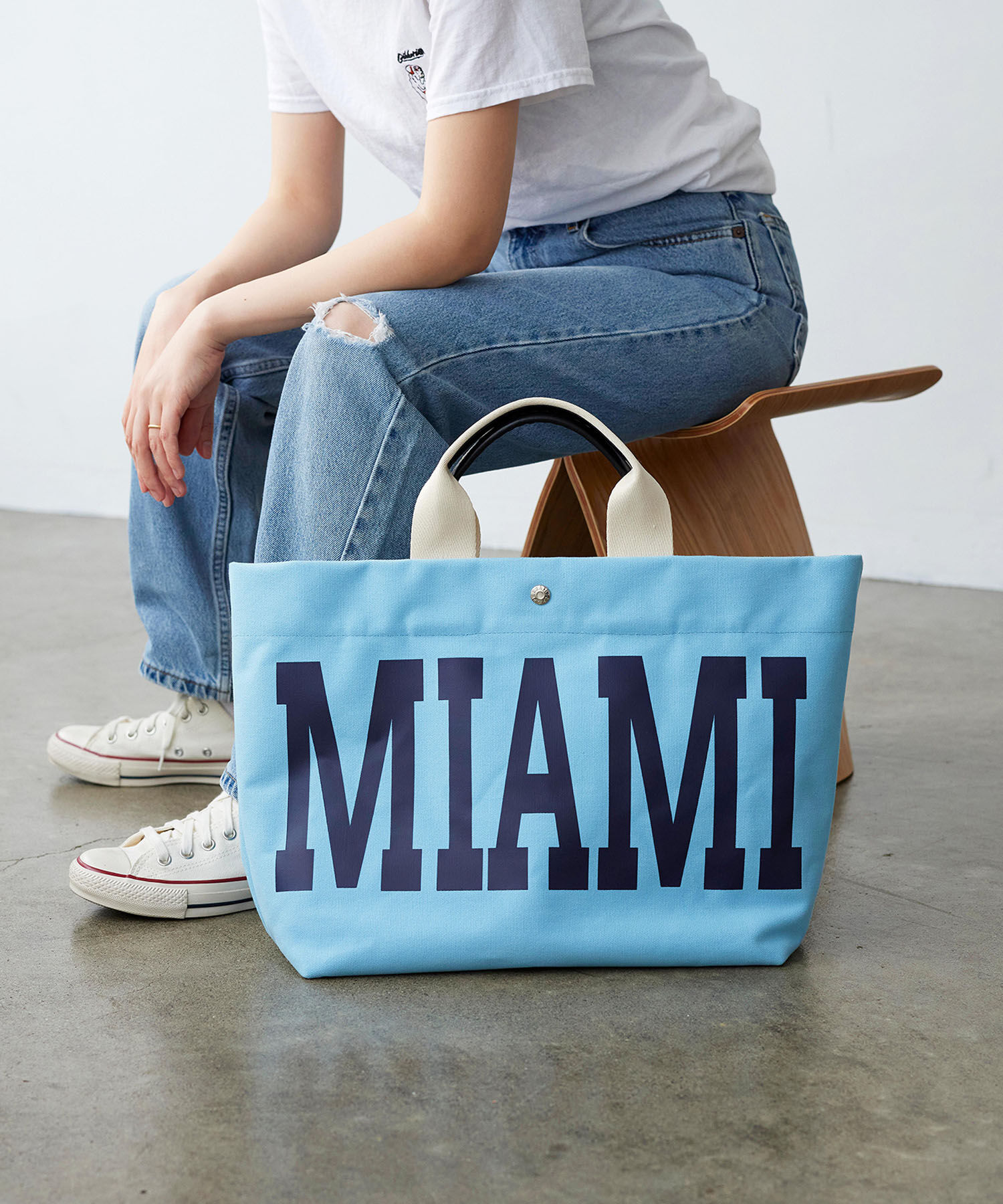 《カジュアルコーデが様になる大胆なグラフィック》アメリカの人気都市名をプリントしたキャンバストートが登場。大人カジュアルのポイントとして効かせたい、クールな存在感を放ちます。口元には.. |