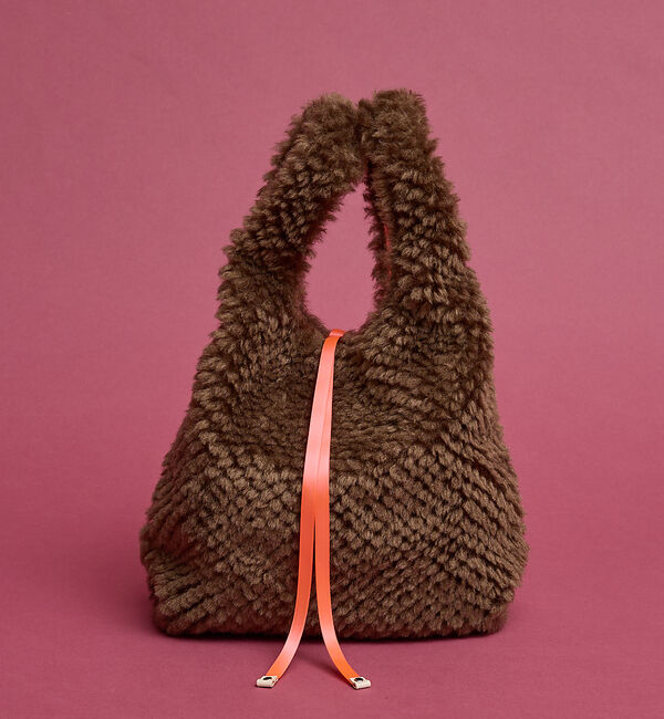 《POINT》毛足の長いふわふわのエコファーが目を引く、マルシェトートバッグ。配色のサテンリボンをあしらい、口元をリボン結びにしても、片方の持ち手に通してワンハンドル風にしてもおしゃれにア.. |
