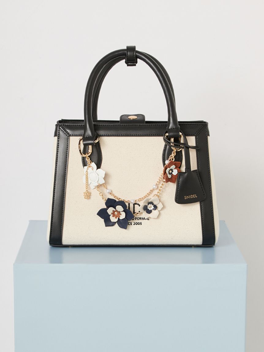 【SNIDELロゴ入りパッドロックモチーフがエレガントな2WAYスクエアバッグ】【Design/Styling】洗練されたデザインが人気のスクエアハンドバッグに、SNIDELロゴ入りのパッドロックモチーフを添えて.. |