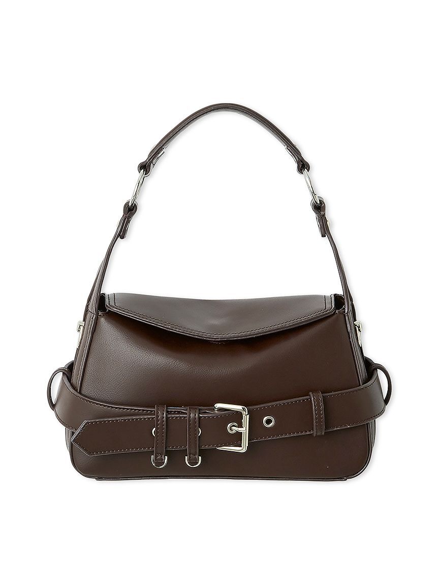【存在感のあるバックルが目を引くミドルバッグで今っぽく】【Design/Styling】センターに施されたバックルモチーフが視線を惹きつけるミドルバック。トップのカーブでひねりを効かせたエッジィな.. |