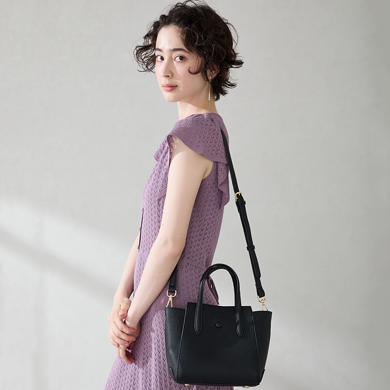 控えめに添えたボタンモチーフがフェミニンにもカジュアルにもすっきりと溶け込んでくれるミニマルなハンドバッグ。バッグインバッグは取り外しが可能なので、入れる物に合わせて調整できるのが使.. |