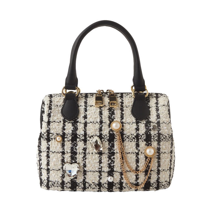 - お色違いは「関連アイテム欄」をご覧ください -【商品仕様】★内部にオープンポケット×2★マグネットボタンによる開閉。★底鋲あり。★存在感のある大小パールのハンドルが主役のキルティングミニバ.. |