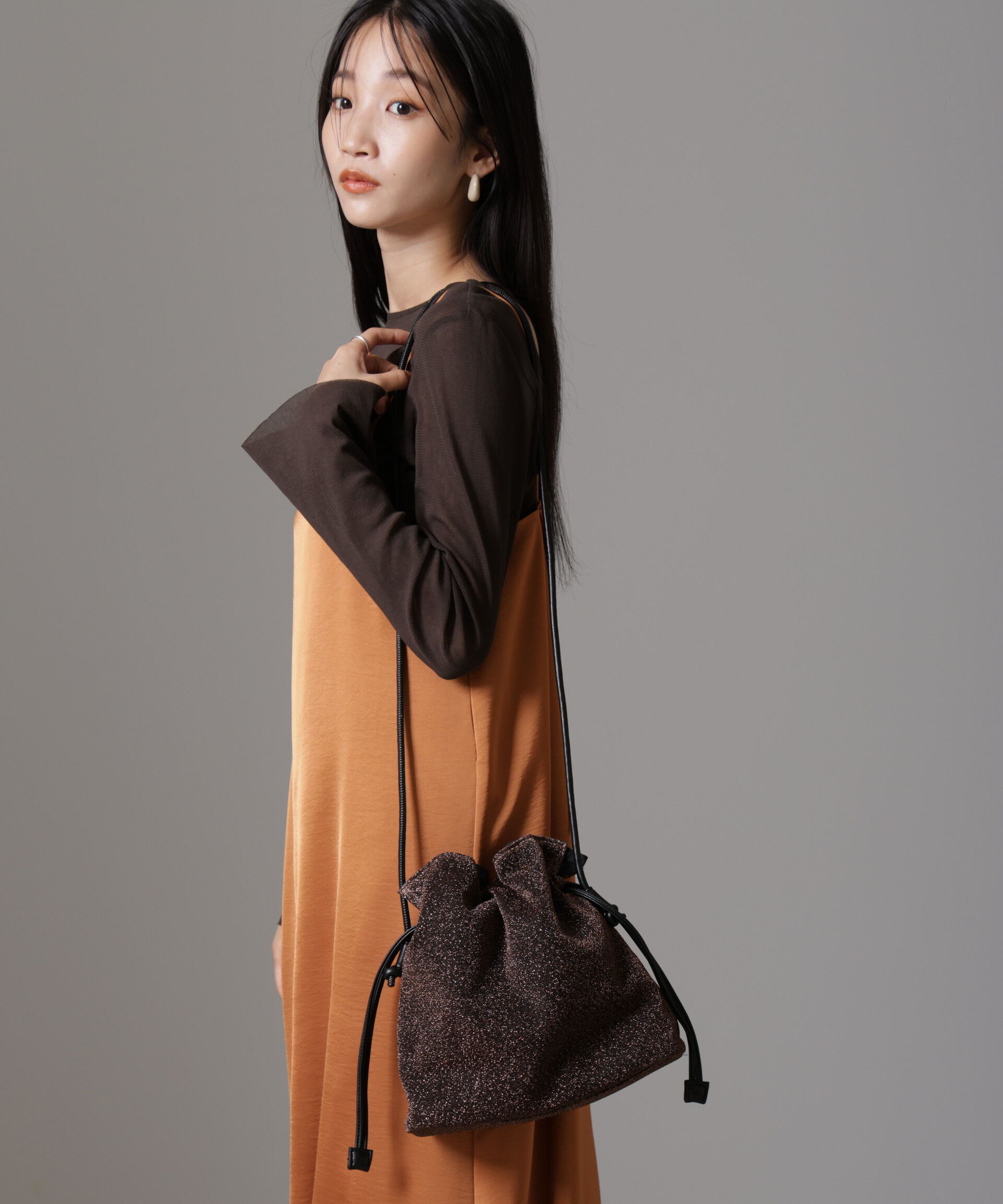 【ナノ・ユニバース/NANO universe】 ラメ巾着ショルダーバッグ