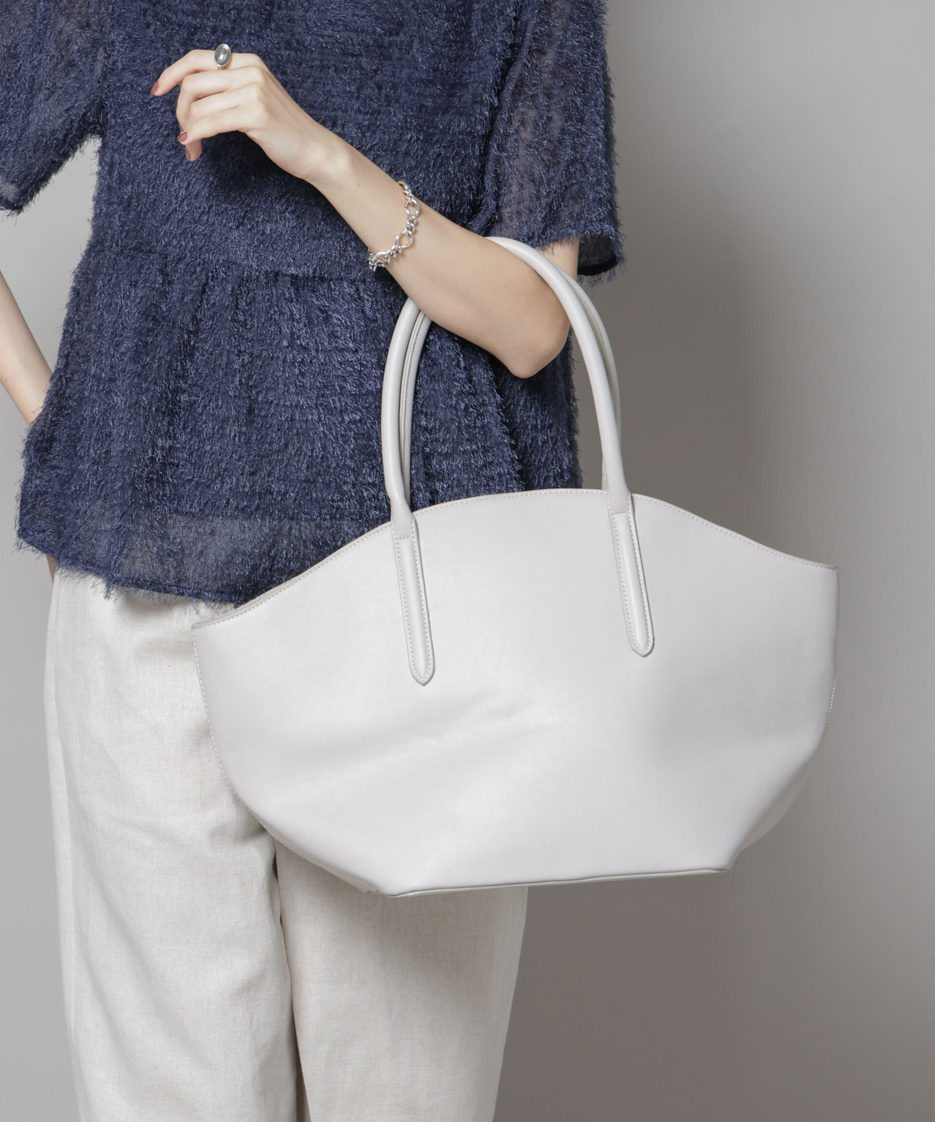 ON/OFFで様になる洗練トートバッグ【2025 AW】NANO universe(ナノ・ユニバース)ラウンド型のデザインが、こなれ感あるスタイリングに導くトートバッグ。大きすぎず程良く持ちやすいサイズ感なの.. |