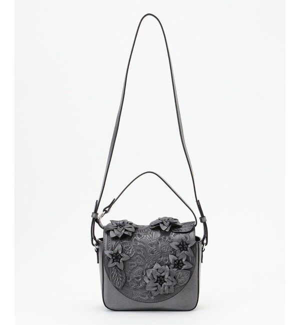 立体的なフラワーモチーフとリーフをトッピングしたフェミニンショルダーバッグ。 19.5�×17�の日常に便利なややコンパクトで愛らしいサイズ感は、コーディネートのポイント使いにもぴったりです。 .. |