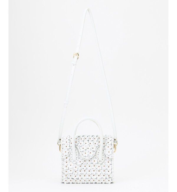 フラワーモチーフの革を全面にアイレットで打ち付けた、可憐なデザインのハンドバッグ。18�×16�の愛らしいミニサイズも日常使いしやすいポイント。付属のストラップを取り付ける事でショルダーバッ.. |