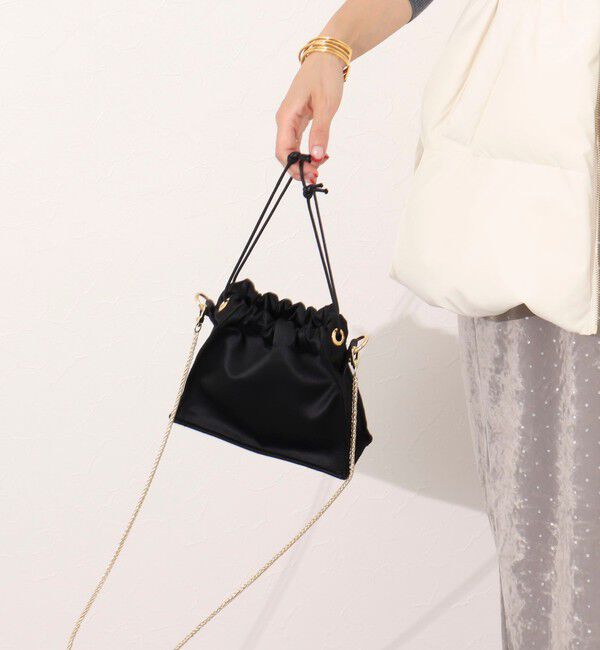 NOLLEY’S sophi◆Point・made in italyのバッグメーカーKassiopeaに別注した巾着バッグ・ベロアとサテンライクの素材の2種類・ネイビーベロアとブラックサテンのボディにゴールドチェーンがラグジュ.. |