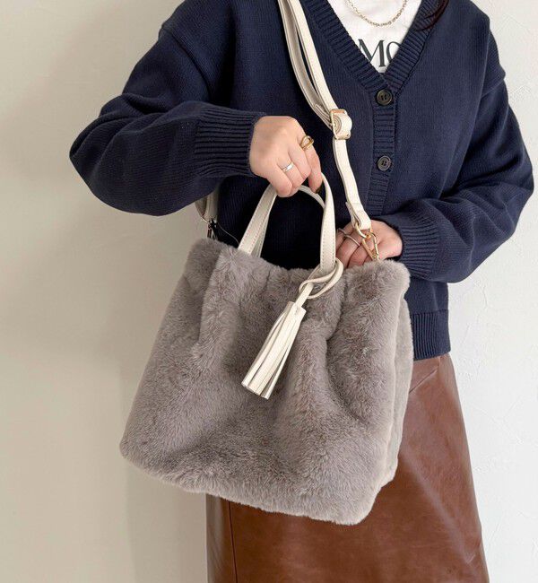 ◇fredy emue◇【2025 AW】冬コーデが華やぐエコファートート●point・フワフワで触り心地の良いエコファーが可愛い2WAYトートバッグ・シンプルなデザインに存在感のあるタッセルがアクセントに・マチ.. |