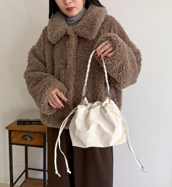 ◇fredy emue◇【2025 AW】三つ編みハンドルがポイントの2wayで使える巾着バッグ●point・三つ編みデザインのハンドルがポイントの巾着バッグ・シンプルながら表情のある素材感が魅力・柔らかく軽量な.. |